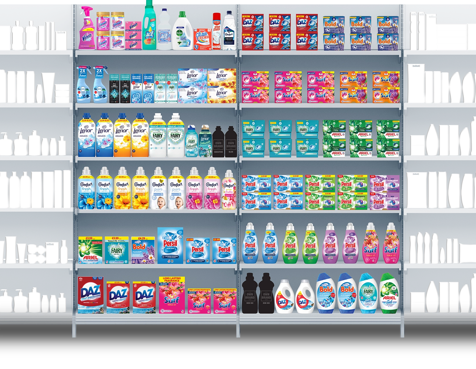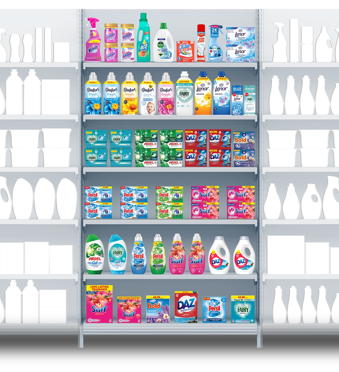 With more space, offer a comprehensive range of Comfort & Lenor – including trade ups such as Lenor Outdoorables.